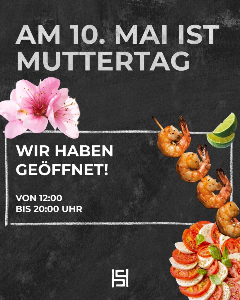 Am 10. Mai (Muttertag) haben wir von 12:00 Uhr bis 20:00 Uhr geöffnet.